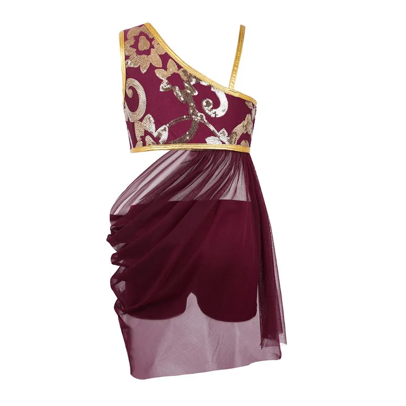 Наряд изготовлен из полиэстера, спандекса, блесток и сетчатого материала, ручная стирка.