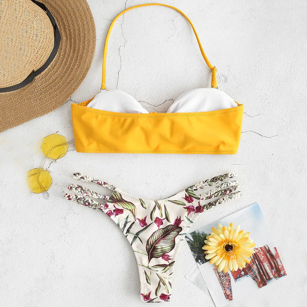 2019 женский Soild пуш-ап пляжный бюстгальтер с подкладкой комплект бикини купальный костюм