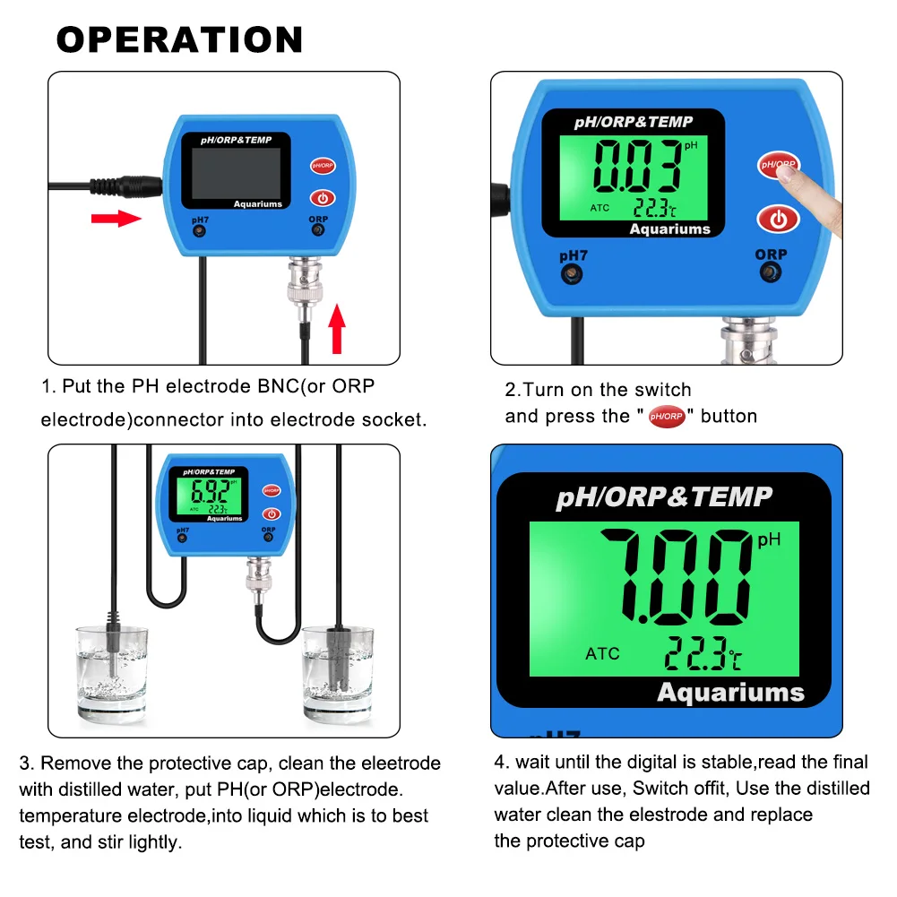 Монитор качества воды 3 в 1-это профессиональный и полезный инструмент для тестирования уровня pH / ORP и температуры раствора. Идеально подходит для широкого применения, таких как напитки, рыбные hatcheries, пищевая промышленность, аквариум, фотография, лаборатория, контроль качества, школы и колледжи, бассейны, водные условия. Особенности: Применяются в водных источниках, аквариумах, гидропонике, спа, бассейнах и других водных системах. Автоматическая компенсация температуры. Используйте для измерения pH / ORP и температуры раствора. Простая калибровка pH и ORP с помощью мини-отвертки. Может следить онлайн в течение длительного времени. Большой и четкий ЖК-дисплей с подсветкой, легко читать и точно измерять функции. Отдельный pH, ORP и TEMP электрод, ATC функция. Характеристики: Единица измерения температуры: градусы/Фаренгейт (опционально) Диапазон: pH: 0,00 ~ 14.00pH ОРП: 0 - ± 1999 мВ Температура: -50 градусов ~ 70 градусов (-58 градусов по Фаренгейту ~ 158 градусов по Фаренгейту) Разрешение: pH: 0.01pH ОРП: 1 мВ Температура: 0,1 градусов (0,2 градусов по Фаренгейту) Точность: pH: ± 0.1pH ОРП: ± 5 мВ Температура: ± 1 градус (± 2 Фаренгейта) Компенсация температуры: 0 градусов ~ 50 градусов (32 Фаренгейта ~ 122 Фаренгейта) Рабочая температура: 0 градусов ~ 50 градусов (32 Фаренгейта ~ 122 Фаренгейта) Длина ORP/pH электродный линейный: прибл. 118 см/дюйма Источник питания: 6 В постоянного тока (блок питания) Тип вилки: ЕС Батарея: 4 × 1,5 V ag-13-ти таблеточная батарейка батареи (не входит в комплект) Цвет: синий Материал: АБС-пластик Размер изделия: прибл. 75*55*28 мм/2,9*2,2 * 1.1in (за исключением температура электрода) Вес изделия: прибл. 68,3g/2,4 oz Размер посылка: прибл. 21*10,4*5 см/8,3*4,1 * 2.0in Вес посылка: прибл. 351,1g/12,4 oz Посылка: 1*3 в 1 pH / ORP & TEMP метр 1 * Руководство пользователя 1 * pH электрод 1 * ОРП электрод 1 * AC-DC адаптер 2 * присоски 1 * кронштейн 1 * Мини-отвертка
