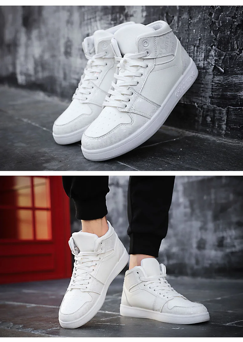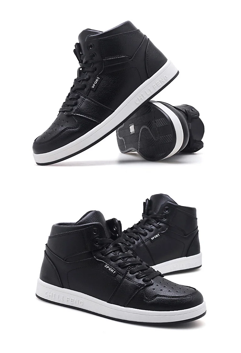 LAKESHI/Мужская обувь; Повседневные кроссовки; Модная высокая парусиновая Повседневная обувь; Кожаная Лоскутная Мужская Вулканизированная обувь; Обувь на плоской подошве со шнуровкой
