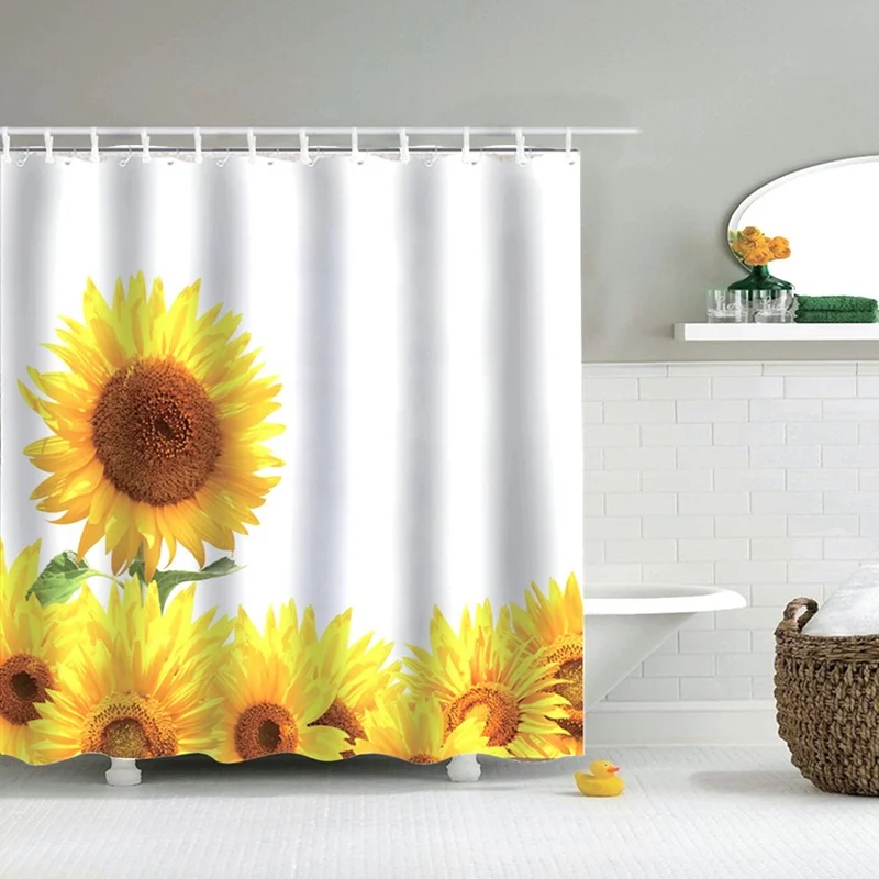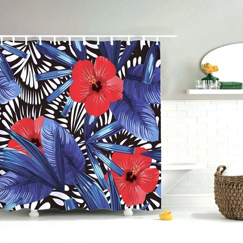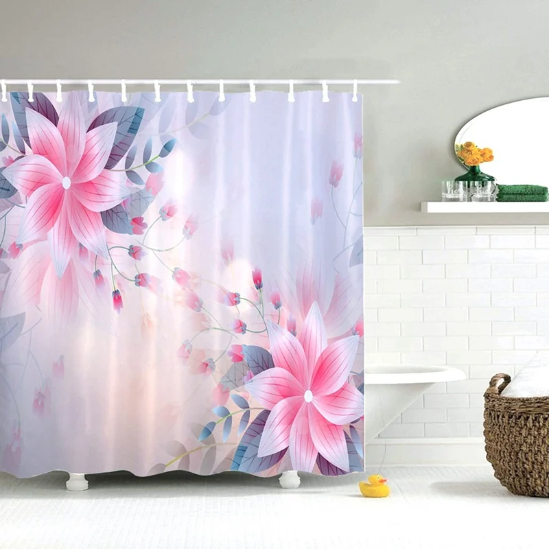Shower Curtain Flowers Shower Curtain Set Polyester Fabric Water Repellent Bathroom Shower Curtain Set Home Decoration with Hook