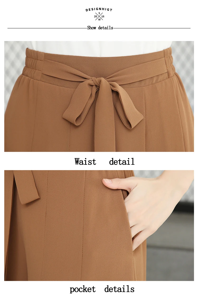Широкие Брюки шифоновый женский светильник, драпированные шорты с пятью точками, летняя юбка, импортные тонкие брюки большого размера с высокой талией W457