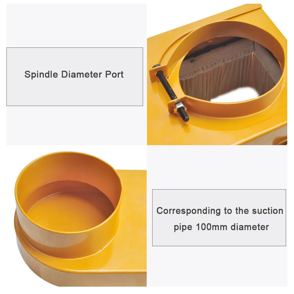 Посылка включает в себя: 1 пылезащитный коллектор (65 мм, 70 мм, 75 мм, 80 мм, 85 мм, 90 мм, 100 мм) Примечание: Пожалуйста, выберите правильную боковую щетку для шпинделя. Спецификация: Диаметр всасывания пыли: 100 мм