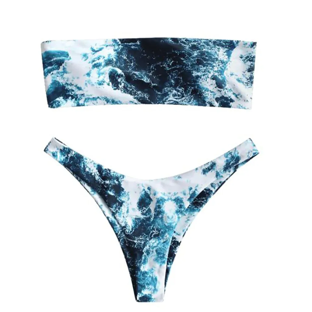 Женский купальник-бикини из двух частей с принтом, пляжная одежда, хит продаж 2019