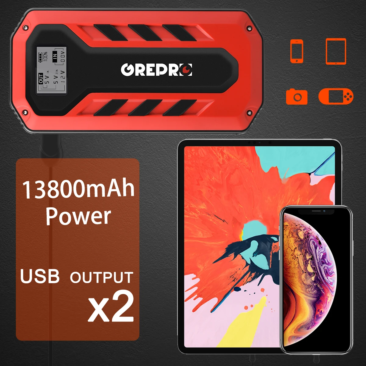 Автоматическая бустерная батарея может запускать все виды транспортных средств 12 В (для газовых двигателей до 6,0л, для дизельных двигателей до 4,0л), работает для мотоциклов, RV, тракторов, светильник грузовых автомобилей малой грузоподъемности, газонокосилка, cargo, квадроциклов, снегоходов, Масляная лодка и т. Д. Каждый водитель должен иметь чехол для аварийной ситуации. ★Внешний аккумулятор большой емкости 12800 мАч: выходной порт 5V-2A позволяет быстрее заряжать ваши мобильные телефоны, планшеты, kindles и другие устройства. Поставляется с usb-кабелем и зарядным устройством для прикуривателя, чтобы вы могли зарядить стартер скачка дома или в машине. Чтобы убедиться, что вы остаетесь на связи с миром во время путешествия.