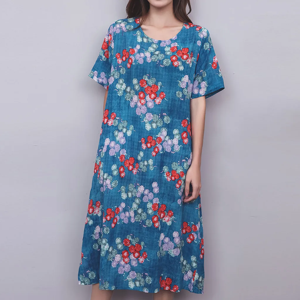 Женское винтажное платье с коротким рукавом, Повседневное Платье До Колена