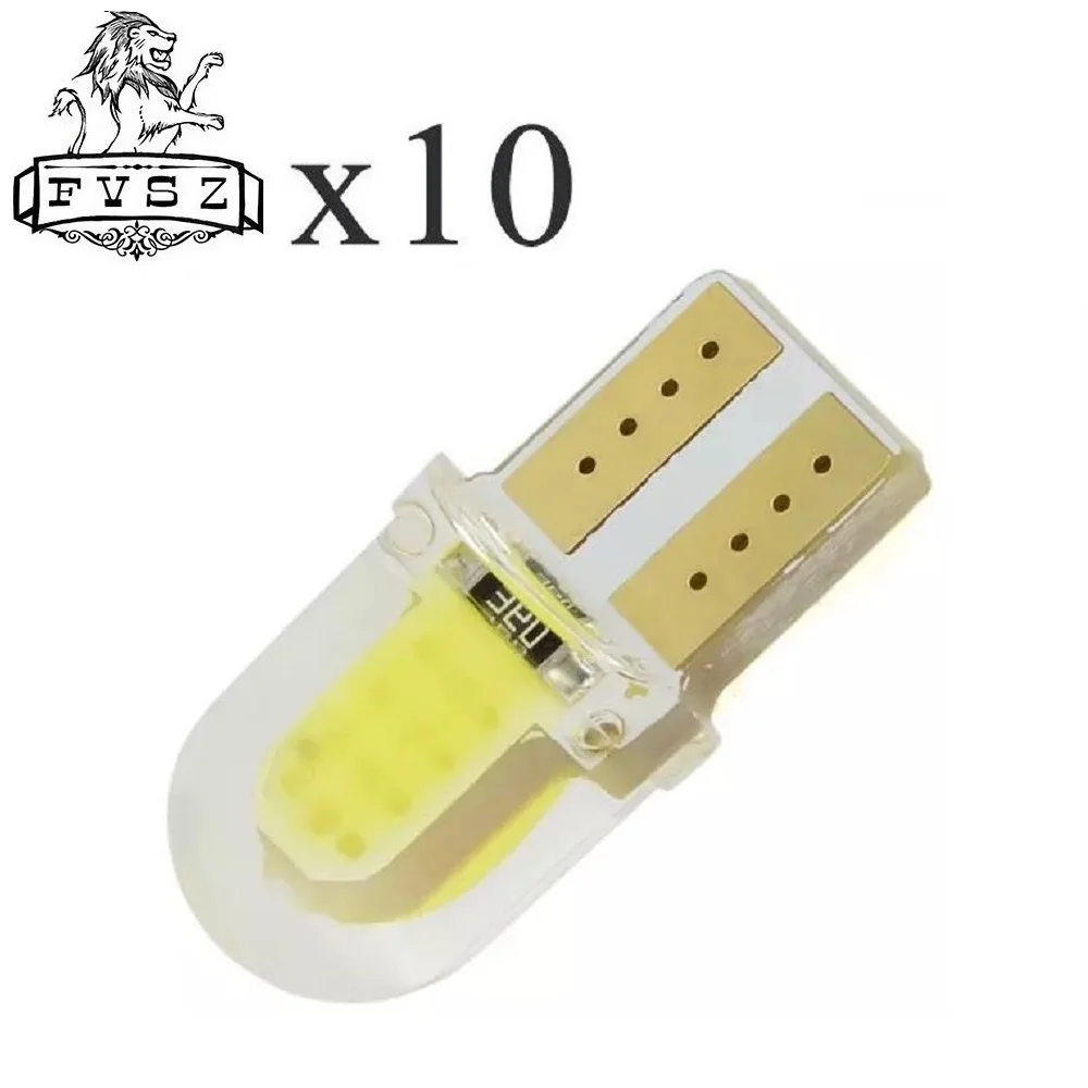 10 шт. T10 светодиодный W5W COB 194 168 801 SMD парковочная лампа авто Клинообразная лампа CANBUS яркая кварцевая лампа белого цвета