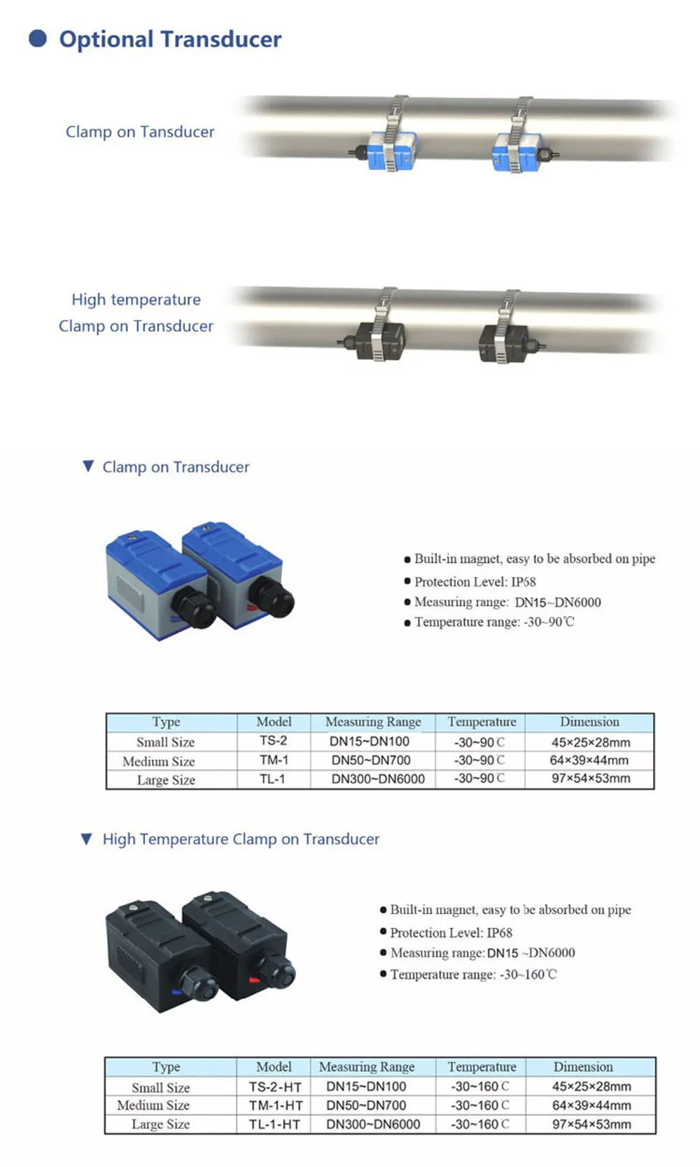 Несколько типов датчиков для выбора, размер трубы от dn15 мм до dn6000мм