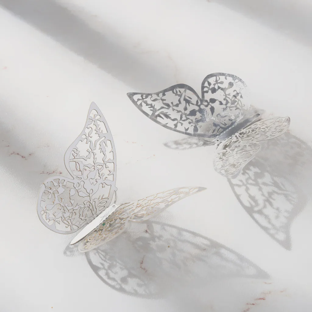 12 шт./лот, настенные 3d-наклейки с золотыми и серебряными бабочками для украшения дома, вечерние Наклейки на стены с изображением бабочек для свадьбы