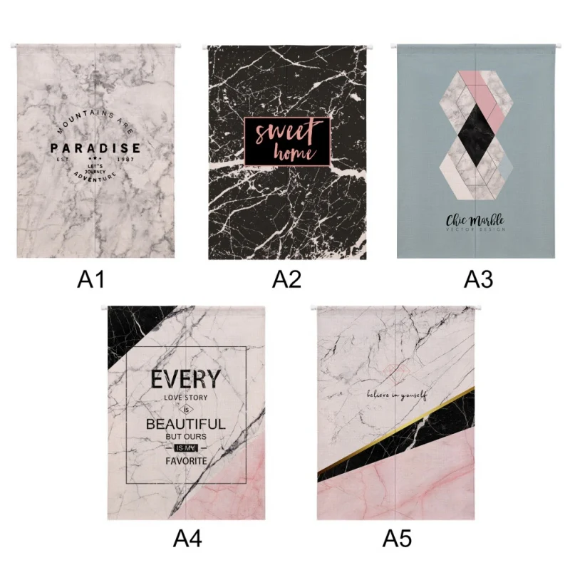 Печатный рисунок-Мраморная зернистая принт с геометрическим узором занавеска на дверной проем, две панели, но шов верхней части.