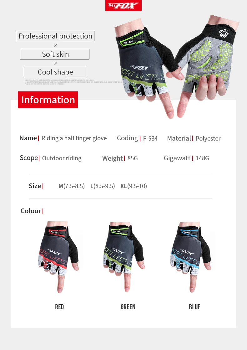 Название продукта: перчатки для велосипеда Размер: M L XL Пол; Взрослые мужчины и женщины Сезон: весна, лето, осень Цвет: красный, синий, зеленый Особенности: Нескользящие, дышащие, противоударные Подходящие места: Велоспорт, тренажерный зал, Спорт на открытом воздухе Перчатки Особенности 1. Специально разработан, чтобы обеспечить комфортное сжатие и поддержку для любителей велоспорта. 2. Он идеально подходит для вашего захвата, все в одном чрезвычайно износостойкий, компактный пакет 3. Благодаря полупальцевой конструкции ваши руки могут дышать комфортно, сохраняя прохладу и сухость 4. Половинчатая конструкция улучшает естественное ощущение, они не громоздкие и неудобные, как и другие перчатки 5. Мягкий прочный материал увеличивает комфорт и сцепление, уменьшает дискомфорт рук и 6: доступны размеры: M, L, XL (пожалуйста, выберите свой размер после торгов). 7: хорошая эластичность, подходит для всех перчаток, не скользит на запястье + ткань, приятная на ощупь. Примечание: Все измерения являются приблизительными. Спасибо за внимание. Магазин с уверенностью!
