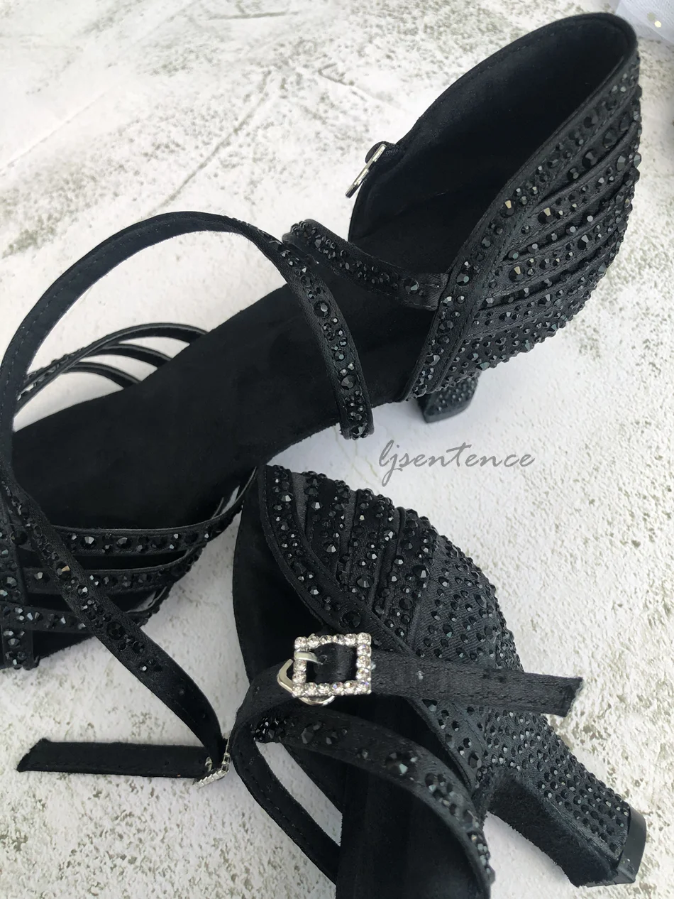 туфли для танцев обувь для латинских танцев; 1. ЦВЕТ: черный, белый в наличии, любой другой цвет можно настроить; 2. РАЗМЕР: US4 ~ US11, очень маленький и большой размер можно настроить; 3. ВЫСОТА Каблука: 6 см, 7,5 см, 8,5 см, 9 см, 10 см можно настроить; 4. ВЕРХНИЙ МАТЕРИАЛ: Атлас + черные стразы; 5. ЕДИНСТВЕННЫЙ МАТЕРИАЛ: мягкая подошва с кожаной замшей; 6. СОБЫТИЕ: общественная вечеринка / профессиональный бальный зал / крытый танцпол / свадьба и т. Д .; 7. Подходящий танец: Сальса Румба Танго Джаз Кизомба Чача Бачата и т. Д. Виды бальных танцев.
