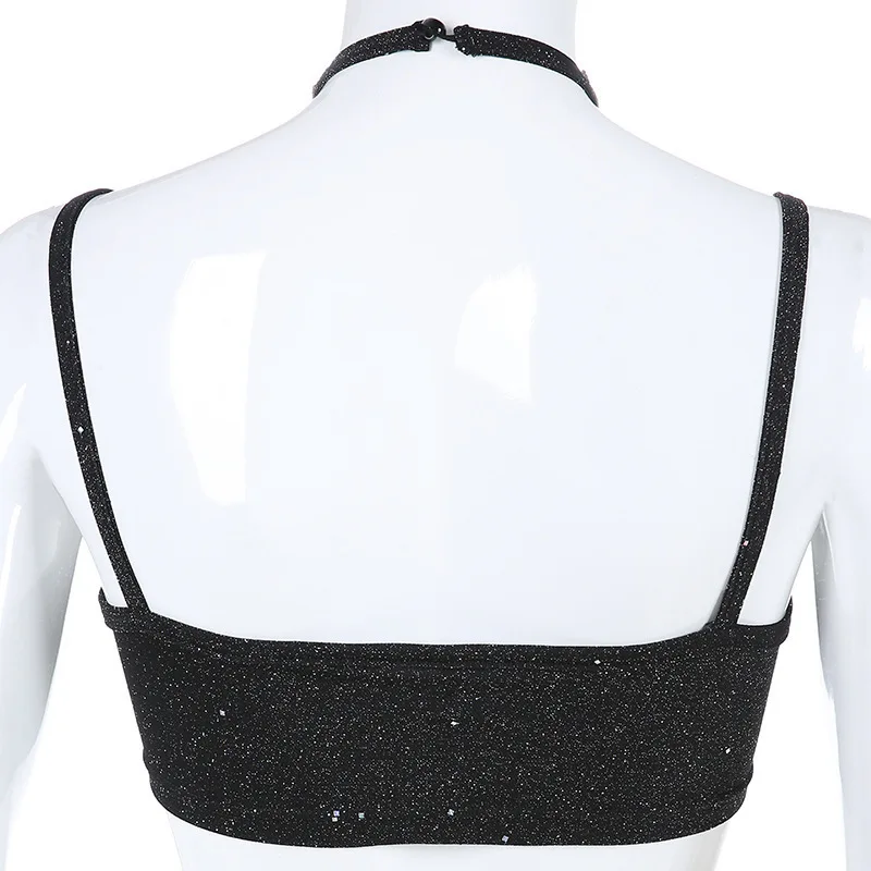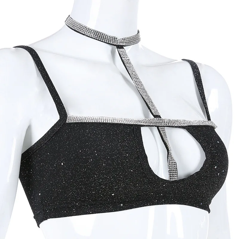 Сексуальная Женская Клубная майка с лямкой на шее, блестящий топ с блестками и бриллиантами, женские летние жилеты без рукавов, топы для вечеринок, Клубная одежда