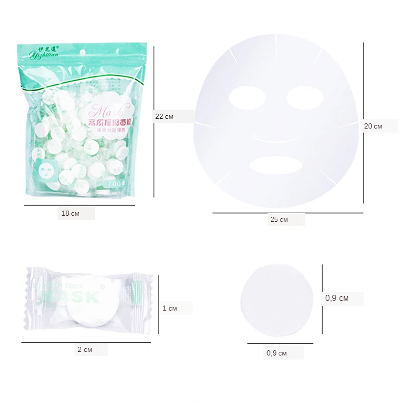 100 шт./компл., для женщин и девочек, для лица, хлопок, сжатая маска, одноразовые обернутые маски, листы, таблетки для ухода за кожей, сделай сам