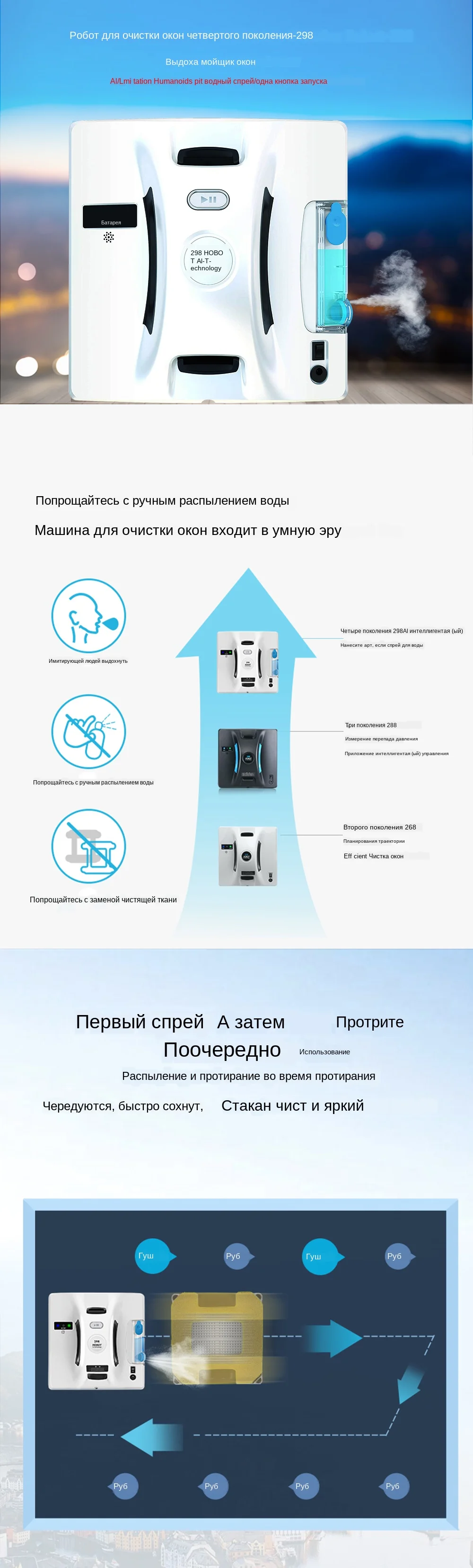 Робот Salange Hobot 298 для мытья окон, квадратный пылесос с распылителем воды, автоматическая уборка, управление смартфоном для дома