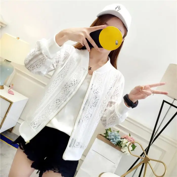 Тип одежды: Женская ажурная бейсбольная куртка с цветочным кружевом; Пальто на молнии; Кардиган с длинными рукавами; Топы