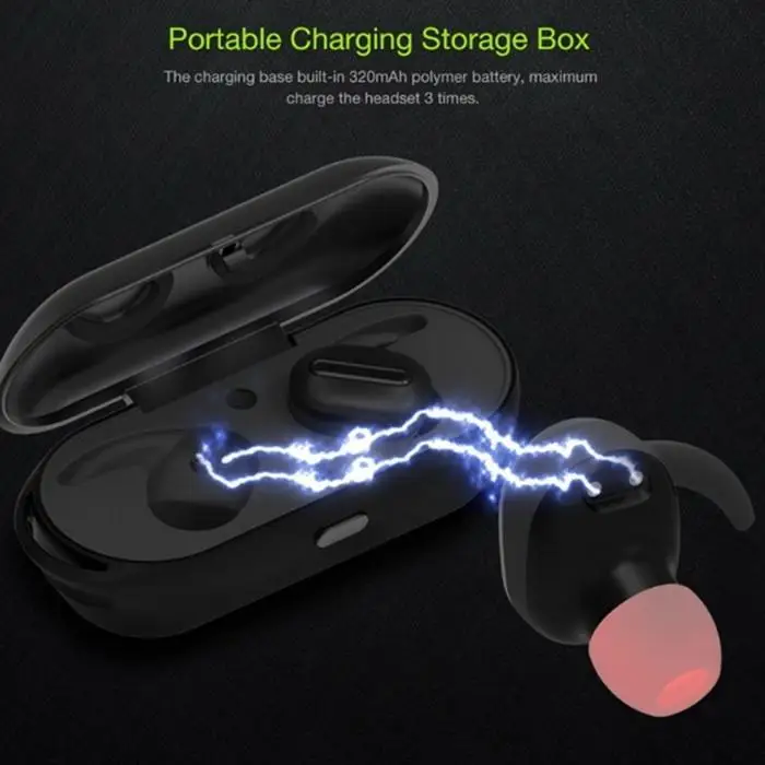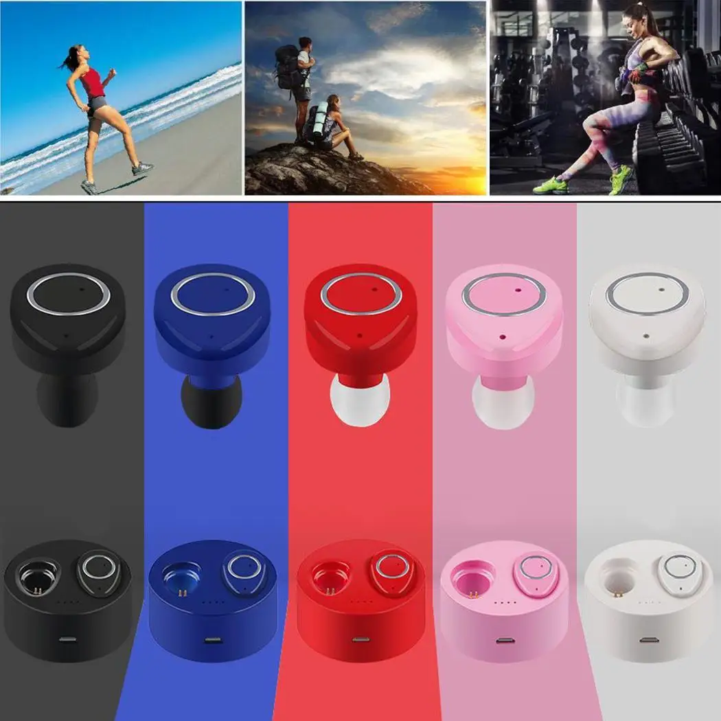 Mini bluetooth earbuds with charger box suitable for sport.