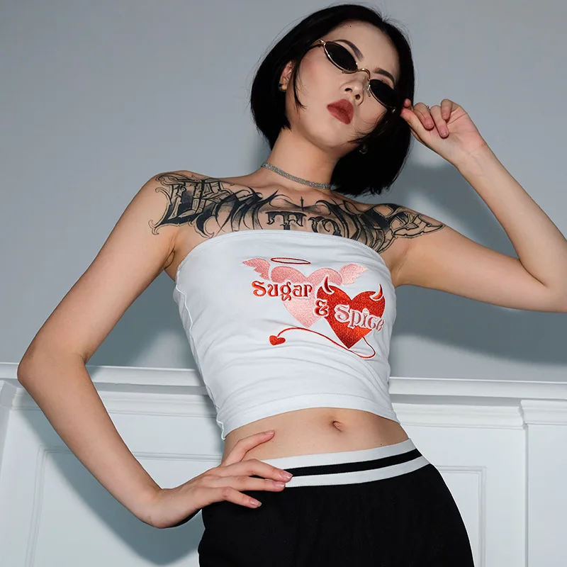 Женский топ на бретельках, белый топ с вышитыми буквами и вырезом лодочкой, топ без косточек на пупках, новинка 2019