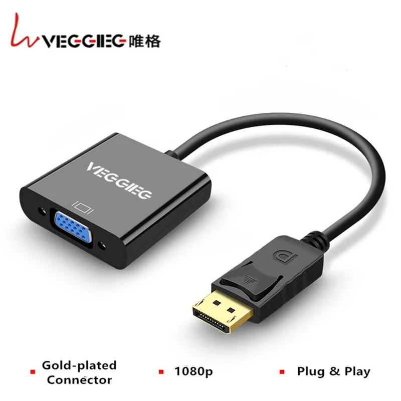 Адаптер Veggieg DP к VGA подключает DisplayPort (DP, DP + +, DisplayPort + +), оборудованный ноутбуком или настольным компьютером к монитору или проектору с входом VGA. Подключите компьютер к монитору или проектору для потоковой передачи видео высокой четкости с помощью этого портативного адаптера и кабеля VGA (продается отдельно). -Подключи и играй. Не требуется внешняя мощность или драйвер. -Поддержка разрешения видео до 1920x1080/1080 p. -Позолоченные разъемы сопротивляются коррозии, обеспечивают долговечность и улучшают передачу сигнала. Важные Примечания: 1. Аудио и HDCP не поддерживаются по аналоговый vga. 2. Это DisplayPort для VGA HDMI DVI Переходник HDMI DVI и DisplayPort отличается от USB. Пожалуйста, проверьте порт на вашем компьютере перед заказом.