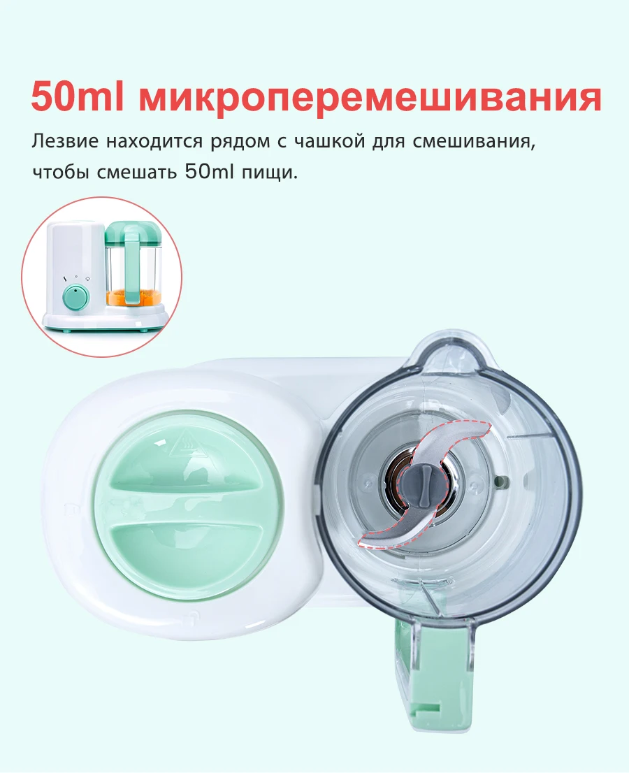 Это в основном предназначены для пар и перемешать свежих продуктов для ребенка или пожилым людям. Давайте вы Паровой и пюре для детского питания, ваш собственный. Также вы можете прикрепить ее к defroast и подогрева еды для вашего удобства. Пожалуйста, Паровая еда перед помешивая при готовке приготовления пищи.