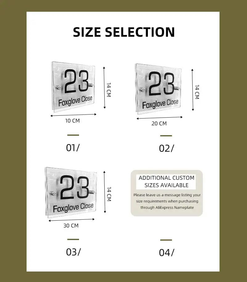 1>Пожалуйста, оставьте нам сообщение с указанием номера двери и названия улицы или любого текста, который вам нужен в примечаниях во время покупки, или отправьте нам сообщение с вашими требованиями через Aliexpress форму платформы. Например-шрифт: Times Text:66 Sunflower ST