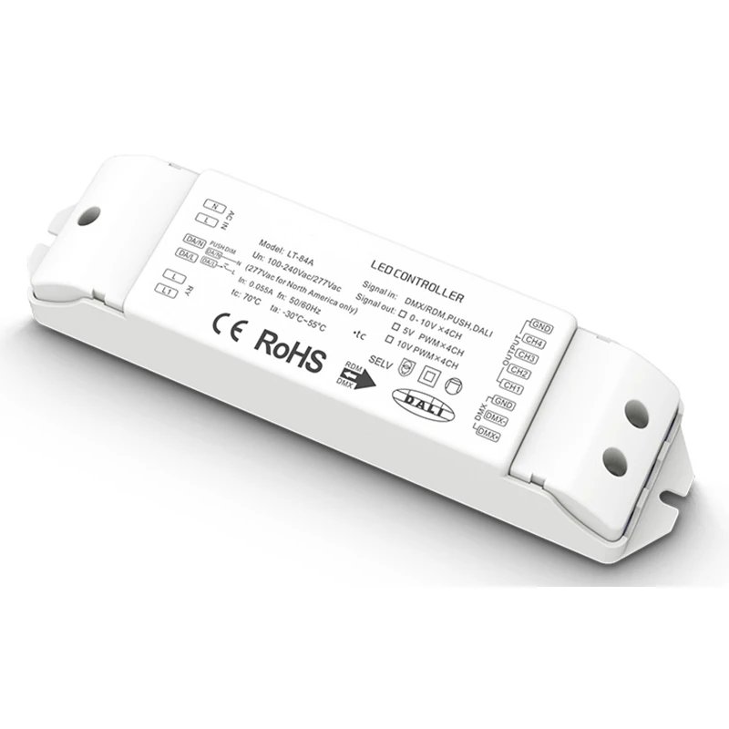 Новый светодиодный преобразователь сигнала DALi на 0-10 В, ШИМ, 120-240 В переменного тока, PUSH DIM, 4-канальный выход, модуль драйвера с затемнением DALI, контроллер DMX RDM