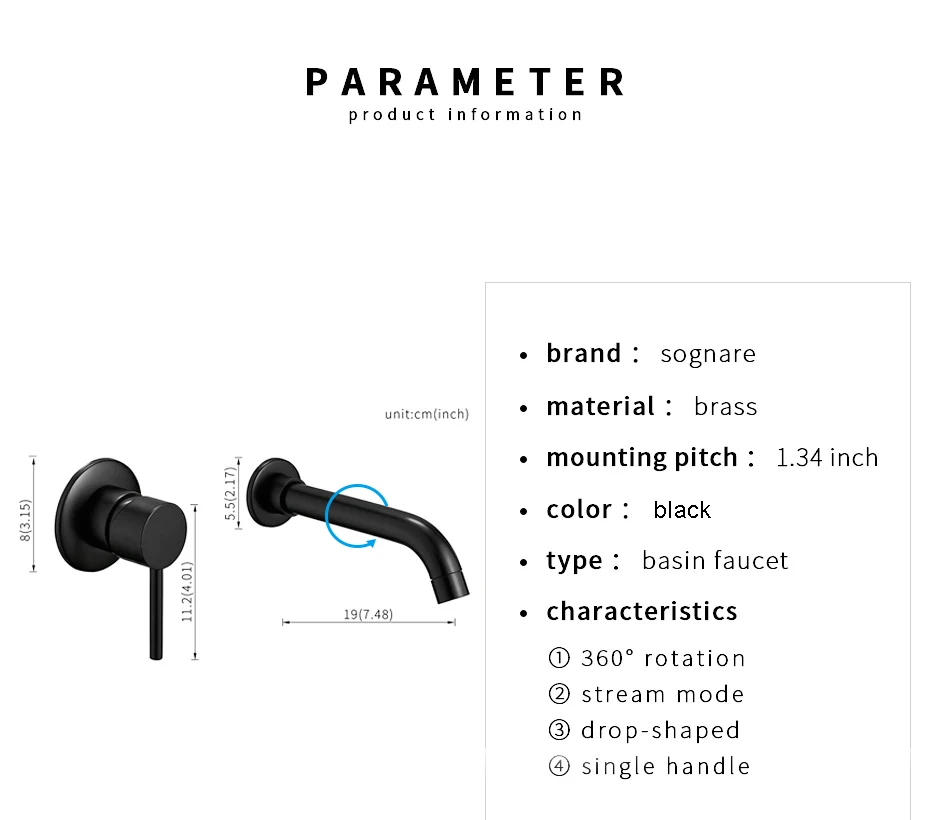 Элегантный дизайн и отделкаПродукт изготовлен в КитаеТип установки: настенныйМонтажные отверстия: двойное отверстиеКоличество ручек: одна ручкаМатериал: латуньОтделка: черный матовыйРасход топлива: 1,8 диаметр разбрызгивателя: 6,81 л/мин)Тип клапана: Керамический клапанПереключатель холодной и горячей воды: Да Доставка посылкаВ том числе: 1 * кран 1 * Монтажные АксессуарыГарантия качества: 5 лет гарантии качества (но если вам сложно, я помогу вам в любое время)> Verzending & for aWaarden