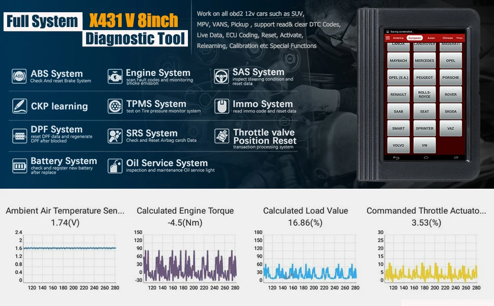 Launch X431 V 8 дюймов Поддержка транспортного средства список