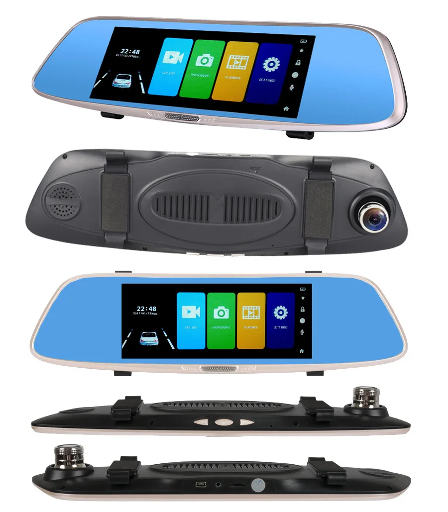 Особенности и технические характеристики Тип установки Зеркало заднего вида, подходит для всех транспортных средств с зеркалом Размер экрана (дисплея) 7,0 дюймовый IPS сенсорный экран Чипсет (процессор/ЦП) Generalplus Очиститель датчика камеры Передняя 2 Мп + Задняя 1 МП Объектив камеры Передняя + задняя; 6 стекла + 4 стекла; угол 170 градусов + угол 140 градусов; Диафрагма F2.0 + диафрагма F2.2 Разрешение видео Передняя: 1920*1080P @ 30 кадров в секунду; Задняя: 640*480P @ 25 кадров в секунду Разрешение фотографий Размеры от 12 мес. Кодировка видео MJPG Батарея Встроенный (встроенный аккумулятор очень маленький, не может поддерживать работу, только для экономии времени, пожалуйста, используйте оригинальное зарядное устройство при работе) Языки экранного меню Английский, русский, китайский, японский, корейский и т. Д. (Если вы хотите другие языки, сообщите нам, мы поможем вам добавить его) Основные характеристики G-сенсор, циклическая запись, обнаружение движения, монитор парковки, отображение времени, широкий динамический диапазон, отображение изображения в картинке, Автоматическое включение/выключение Слот для карт памяти Карта Micro SD, класс 10 и 8 Гб до 32 Гб (не входит в комплект) Автомобильная камера заднего вида обновления Поддержка Макс 12 метров кабель камеры заднего вида Добавлять новые функции Ночное видение, Белое Зеркало, синее зеркало Больше функций Скоро в продаже ..... Упаковочный лист Основные: 1 х упаковочная коробкаМы используем самый большой IPS экран, с сенсорной функцией, получаем больше удобства для эксплуатации, получаем более высокое разрешение для видео/изображений дисплея.