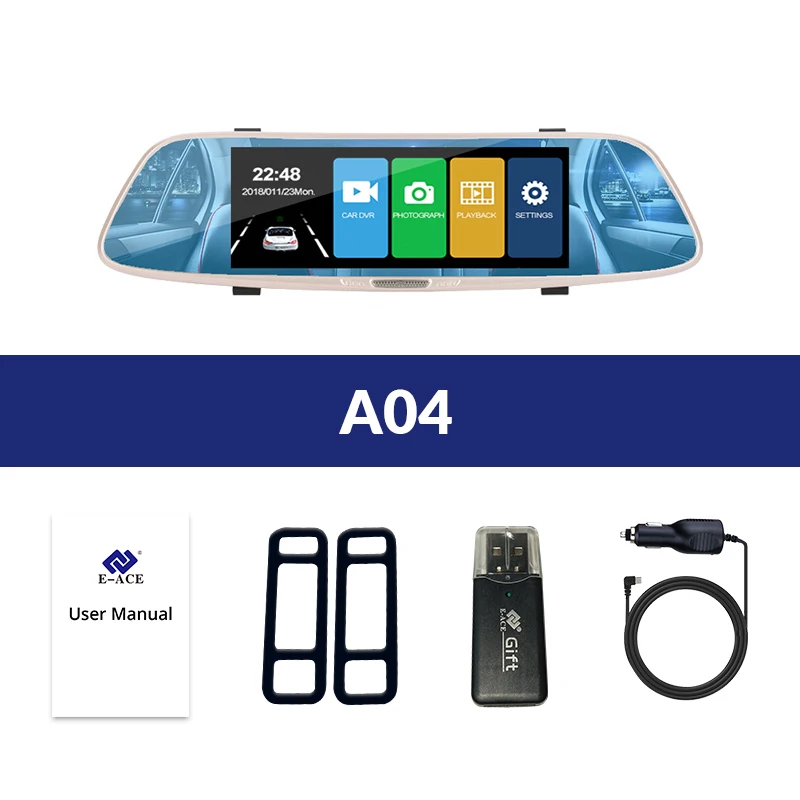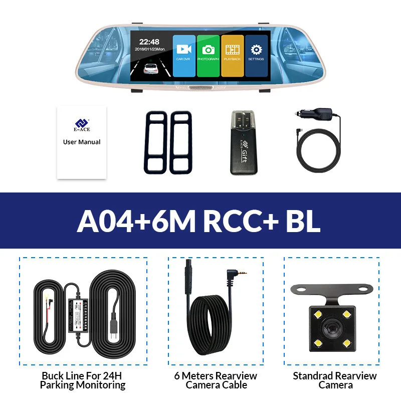 E-ACE Автомобильная DVR камера FHD 1080P 7,0 дюймов сенсорный зеркальный видеорегистратор двойной объектив с камерой заднего вида авто регистратор видеорегистратор