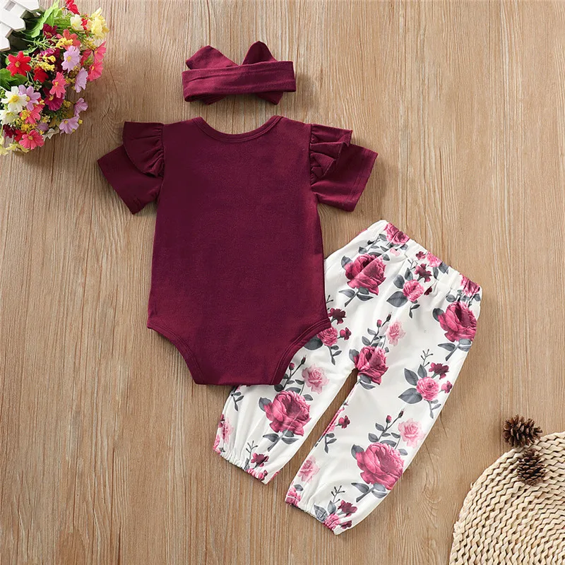 Топы для новорожденных девочек; Комбинезон; Штаны с цветочным рисунком; Комплект одежды