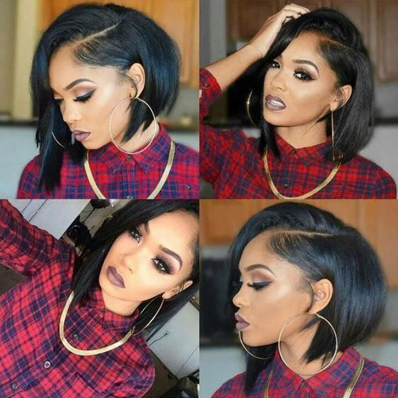 Прямые прямые парики 13*4 с кружевной передней частью # 1B/27 и # 1B Короткие парики Pixie Cut 150 Плотность парики бразильские человеческие волосы Remy Парики