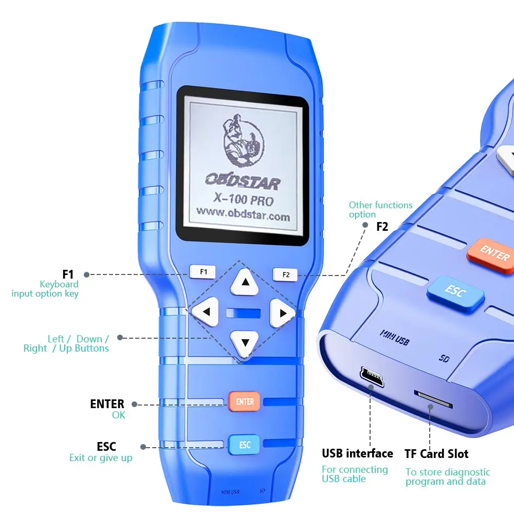 1. OBDSTAR X-100 PRO Auto Key Programmer (C + D) Тип 2, с X-100 PRO, не беспокойтесь о совпадении! 3. X100 PRO C + D Тип функции: иммобилайзер удаленный матч + одометр + OBD Software4. X-100 PRO автоматический ключ Программатор-это своего рода ручное устройство для ключей программирования в устройствах иммобилайзера на транспортных средствах. Этот инструмент сканирования имеет простой и надежный дизайн, чтобы сделать ваш опыт обслуживания автомобиля намного проще!