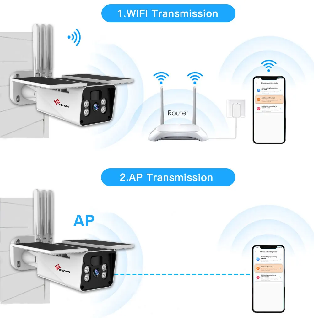 Поддержка и 2,4 ГГц WI-FI соединением и камерой ap-соединение. Не нужно беспокоиться о том, что нет сети. (Примечание: максимальное расстояние передачи AP составляет всего 15 метров.)