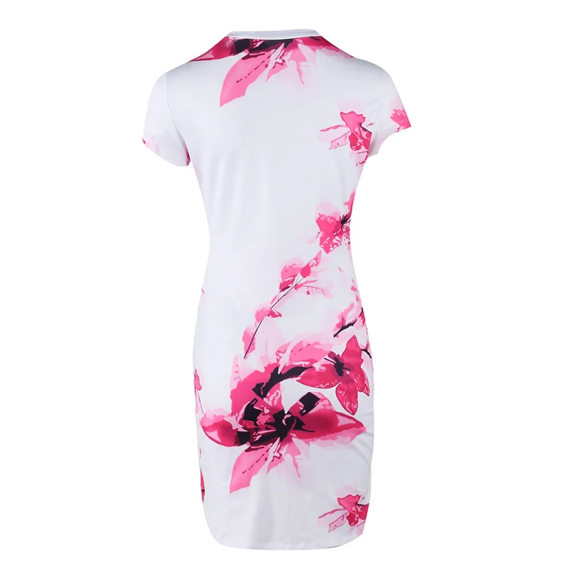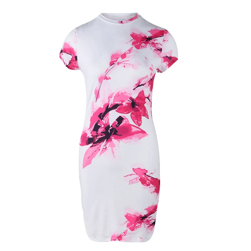 * Описание товара: Женский, с короткими рукавами, сексуальный, круглый вырез, цветочный принт, облегающий