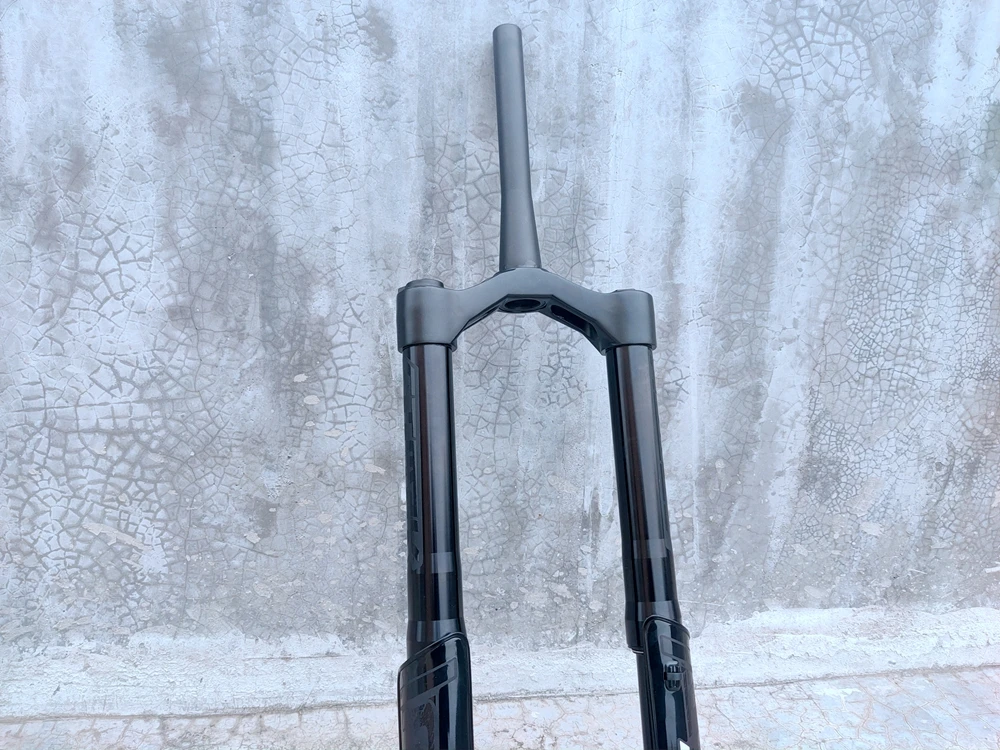 Подходит/24/26 27,5 "* 4,0" велосипедная шина. Вилка из алюминиевого сплава, титановая обработка поверхности. 28,6 мм A7075 алюминий опционально 1,5 алиминум конический стерер Станион 34 мм A7075 Алюминиевый Жесткий анодированный черный Нижняя часть: Алюминий 15 мм QR 150 мм Путешествия 150 мм. Спред 150 мм. Picthc: '185mm Два переключателя для регулировки пружины.