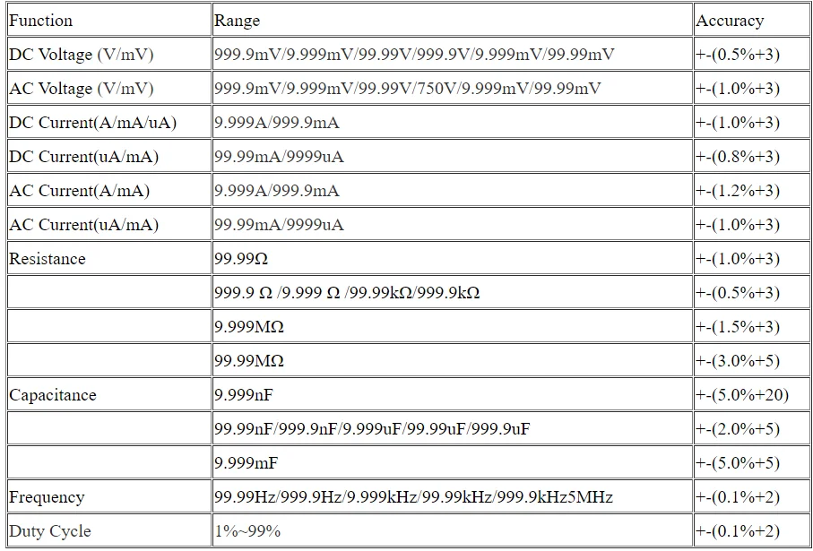 Эти товары представляют собой цифровой мультиметр с автоматическим диапазоном true RMS на 9999 подсчетов. Управление им осуществляется с помощью кнопок с дисплеем tripe.