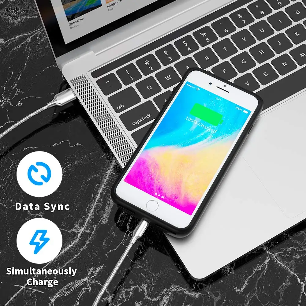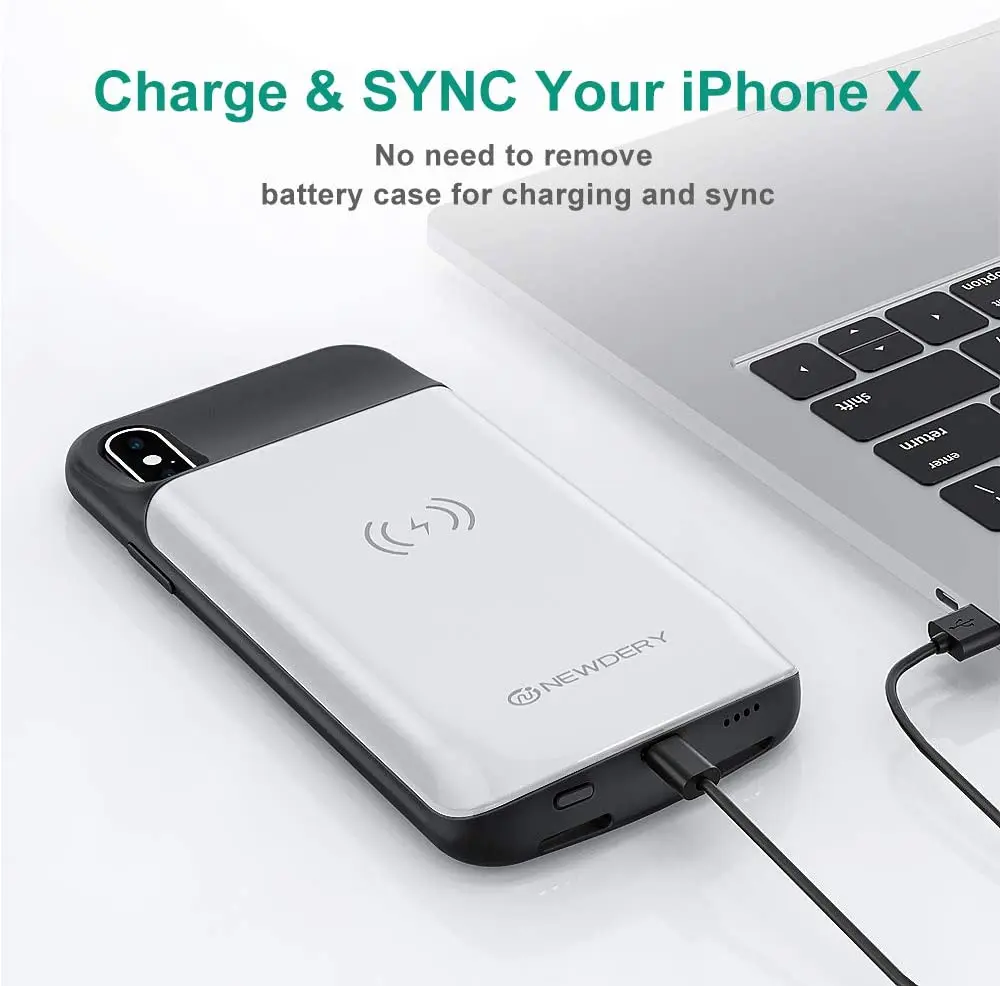 [Зарядка и DATA-SYNC 2 в 1] -синхронизация с MacBook, ПК или ноутбуком, не снимая аккумулятор корпуса. Одновременно заряжайте ваш iPhone XS Max и зарядное устройство вместе с оригинальным кабелем iPhone lightning.