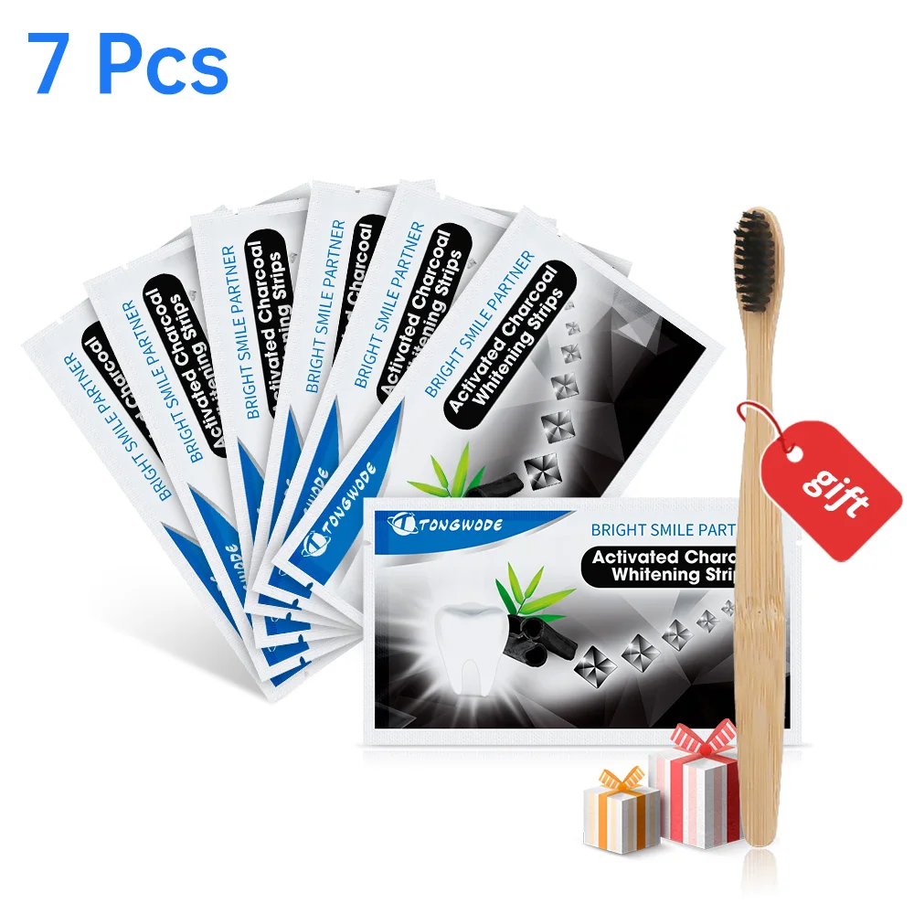 Комплект 1 1*7 пар/14 шт. отбеливание зубов углем полоски 1 * Деревянная зубная щетка (бесплатный подарок)