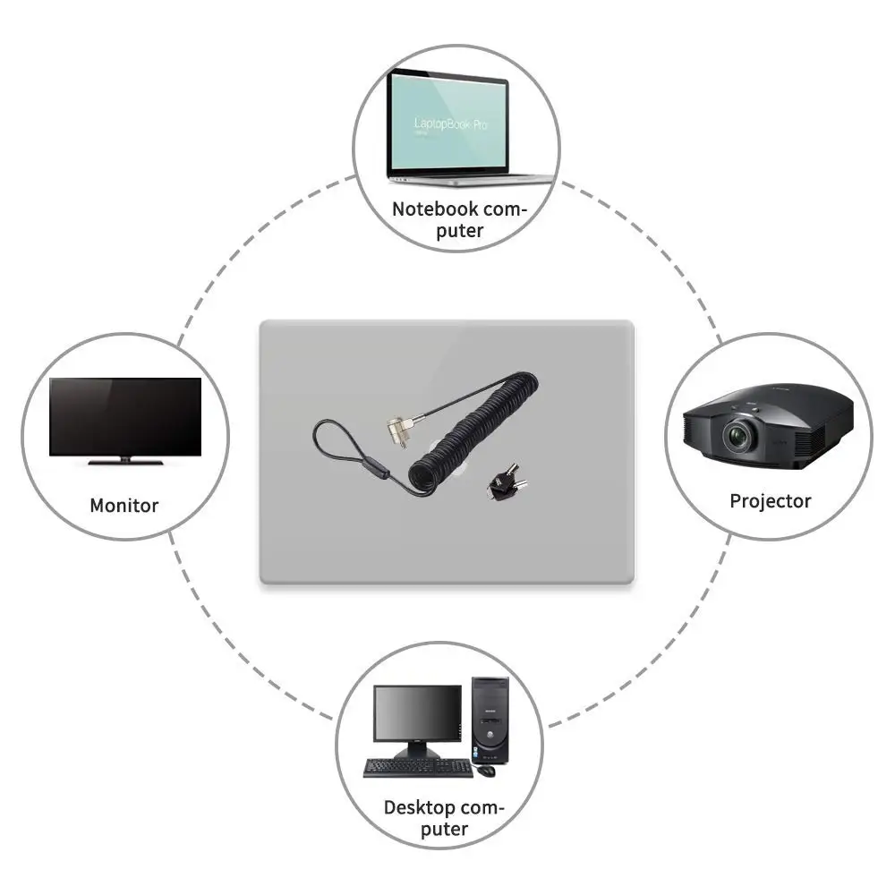 Изделие self-обмотка кабеля может быть длиной до 200 см. Подходит для всех планшетов, смартфонов, ноутбуков, Macbook, Ipad, ноутбуков. Кабель изготовлен из прочной многожильной стали с устойчивостью к порезам и надежностью 100%. Защитите свои электронные устройства в общественных местах. Просто оберните ноутбук вокруг неподвижного объекта и используйте порезанную оцинкованную стальную цепь.