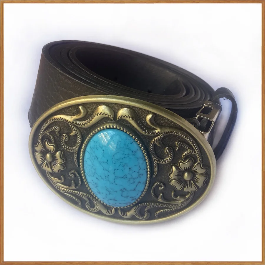 Описание товара:Пряжка для ремня из бирюзового камня с античной латунной отделкой