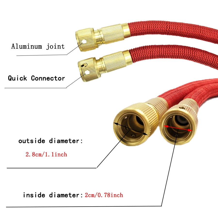 Описание продукта: Название продукта: садовый водный шланг Материал: 3 слоя ТПЭ + алюминиевое соединение + металлического пистолета Выдвижная Длина: 15 футов = (5 м после впрыска воды), Оригинальная Длина: = 1,5 м 25 футов = (7,5 м после впрыска воды) Оригинальная Длина: 2,5 м 50 футов (15 м после впрыска воды), Оригинальная Длина: 5 м 75 футов (22,5 m после впрыска воды) Оригинальная длина: 7,5 м 100 футов (30 м после впрыска воды), Оригинальная Длина: 10 м Примечания: 1: 5 м, 7,5 м, 15 м, 22,5 м, возможностью погружения на глубину до 30 м-это длина aftering Закачка воды Max Длина 2: шланг-Волшебный шланг: Низкое давление воды: 2-2,5 раз удлинение при разрыве Высокое давление воды: 3 раза удлинение