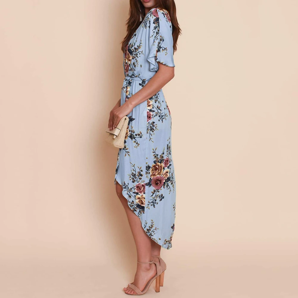 * Описание товара: сексуальный, v-образный вырез, короткий рукав, завязывается, принт, неправильный, Сплит, ласточкин хвост