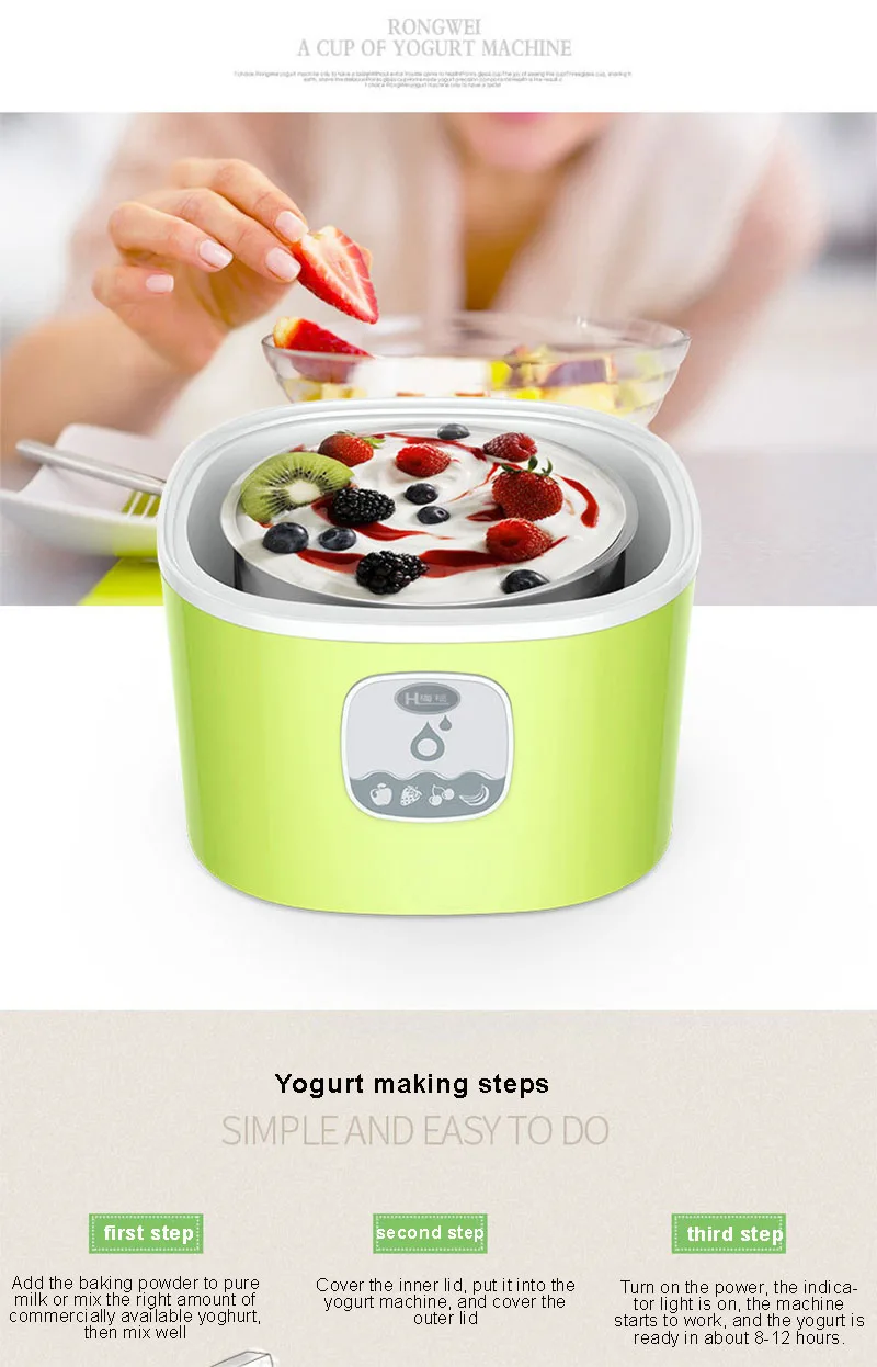 Kbxstart 220 В электрическая автоматическая машина для приготовления йогурта йогурт DIY инструмент многофункциональная машина для йогурта из нержавеющей стали 1L