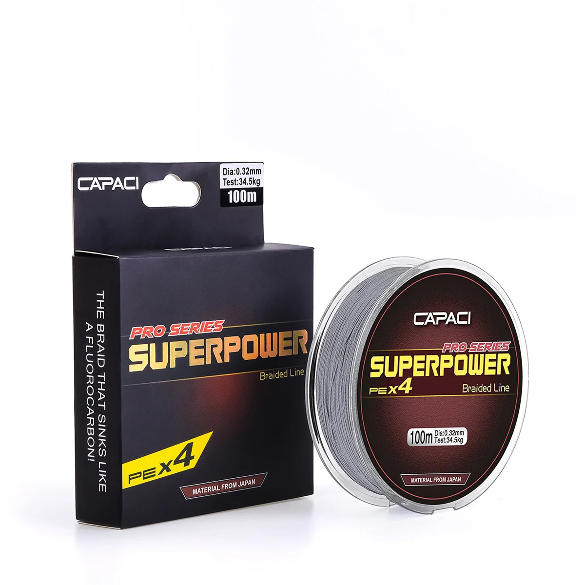 Основная линия сплетена из 4 нитей, которые изготовлены из множества сверхмолекулярных полиэтиленовых плетеных волокон, которые плотно вплетены, чтобы иметь меньшую пластичность и меньший диаметр.