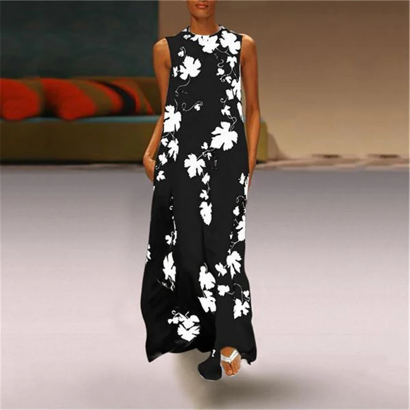 * Item Description: Women Clothing, Summer, Round Neck, Printed Ethnic Style, Sleeveless, Loose Long Dress