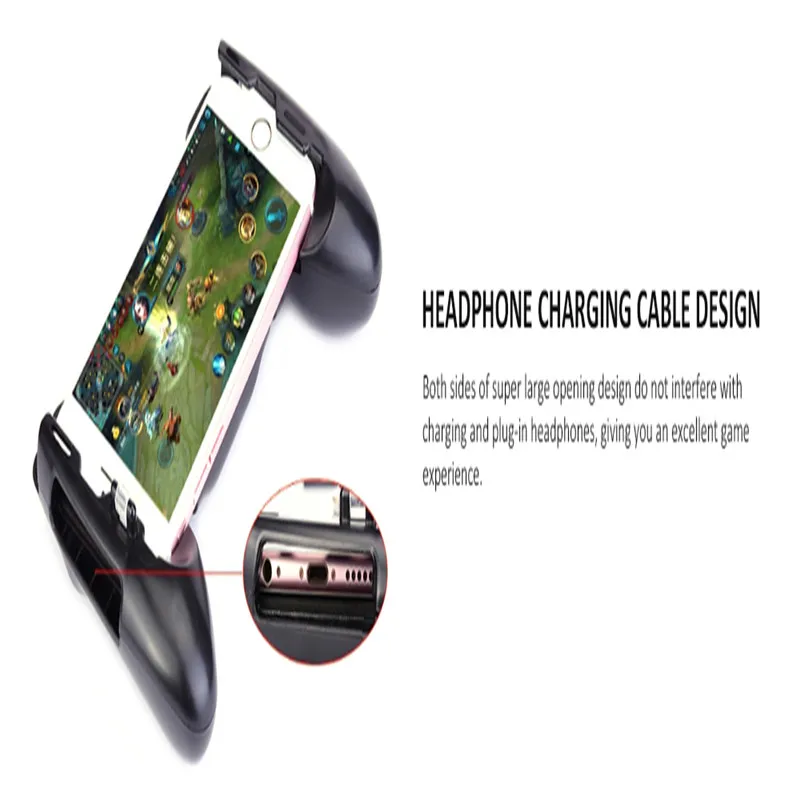 Description: Touch-sensitive shooting left hand movement, right hand aim Left upper shot Fingers can gently touch contact sensitivity Supported devices: for iphone and android phone Supported games, but not limited to: Survival rules Knife out PUBG Mobile Important actions packing includeed: 1 pc gamepad