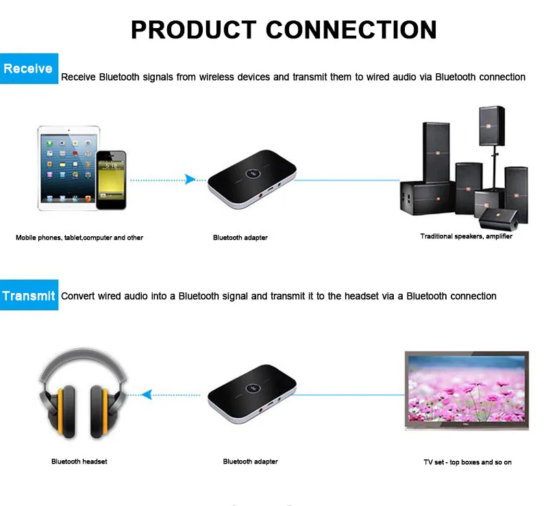 Беспроводной аудио адаптер A2DP Aux 3,5 мм аудио плеер для ТВ/домашнего стерео/смартфона