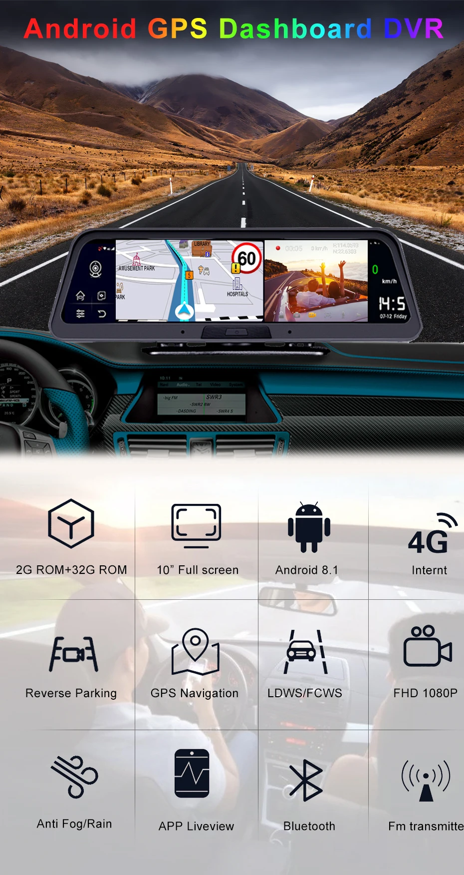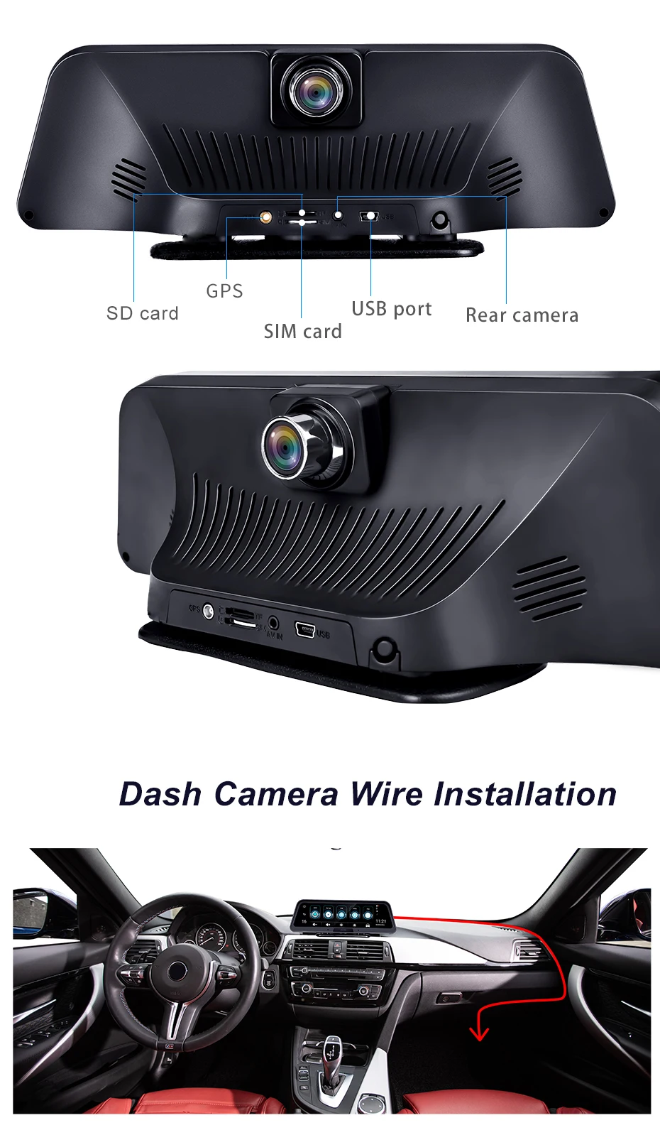 ** Тип установки: зеркало заднего вида, подходит для всех транспортных средств с зеркалом- ** Экран (Дисплей) Размеры: 10,0 дюймов сенсорный экран Экран- ** Чипсет (процессор/ЦП): SL8541E- ** RAM: 2G; ROM: 32G- ** Система: Android 8,1- ** Объектив камеры: передняя + задняя; 6 стекла + 4 стекла; Угол 170 градусов + угол 120 градусов; Диафрагма F2.2 + диафрагма F2.2- ** Разрешение видео: спереди: 1280*720P @ 25 кадров в секунду; Сзади: 1920*1080P @ 30 кадров в секунду- ** Разрешение фото: 8 м- ** Видео Код: H.264- ** Gps-навигация: поддержка- ** Сеть SIM: поддержка (4G/LTE:FDD,2100(B1)/1800(B3) GSM:900(B8)/1800(B3)- ** WIFI: поддержка- ** Bluetooth: поддержка- ** Батарея: без- ** Языки: арабский; Чешский; Голландский; Английский; Французский; Немецкий; Итальянский; Японский; Корейский; Латвийский; Польский; Румынский; Русский; Словацкий; Испанский; Вьетнамский- ** Основные Особенности: г-Сенсор с зеркалом заднего вида, циклическая Запись, обнаружение движения, светодиодный дисплей, 24 часа в сутки для парковочной системы, широкий динамический диапазон, отображение времени и данные Дисплей с зеркалом заднего вида, широкий динамический диапазон ** Карта памяти: карта Micro SD, класс 10 и 8 Гб до 64 Гб (не входит в комплект). ** Посылка включает: 1 x зеркальный видеорегистратор 1 x Задний Камера (с 5,7 метров; При выборе руководствуйтесь длиной 1 х Кабель питания OBD Buck (кабель питания) 1 x Антенна GPS 2 x Резиновая лента 1 х руководство на английском языке