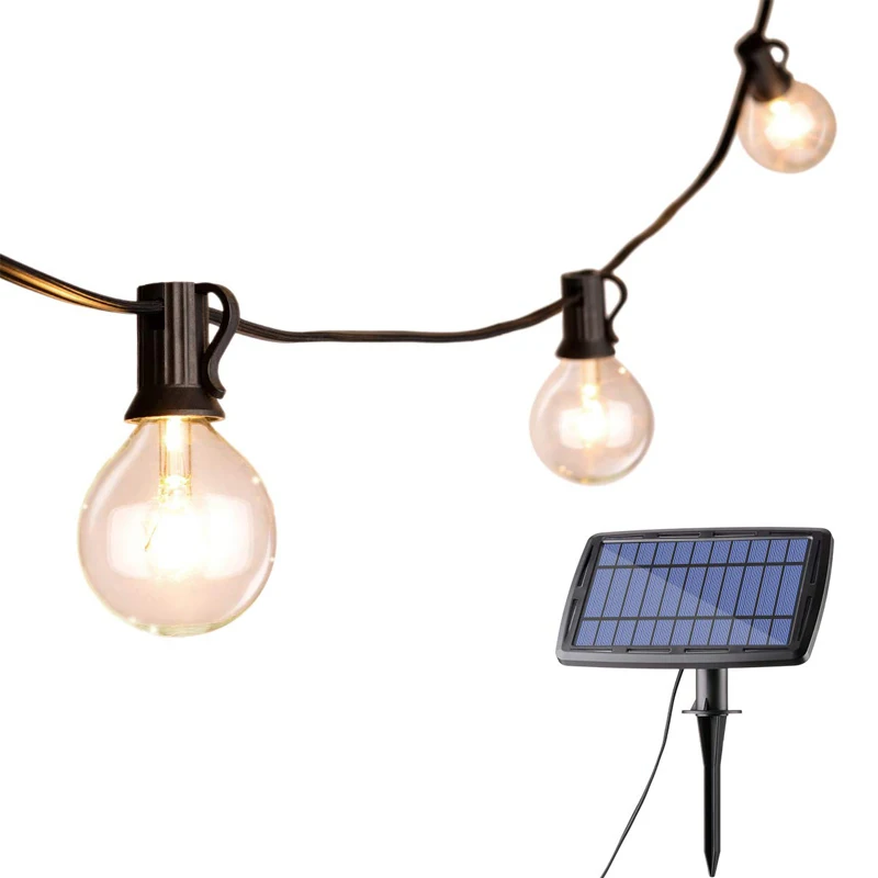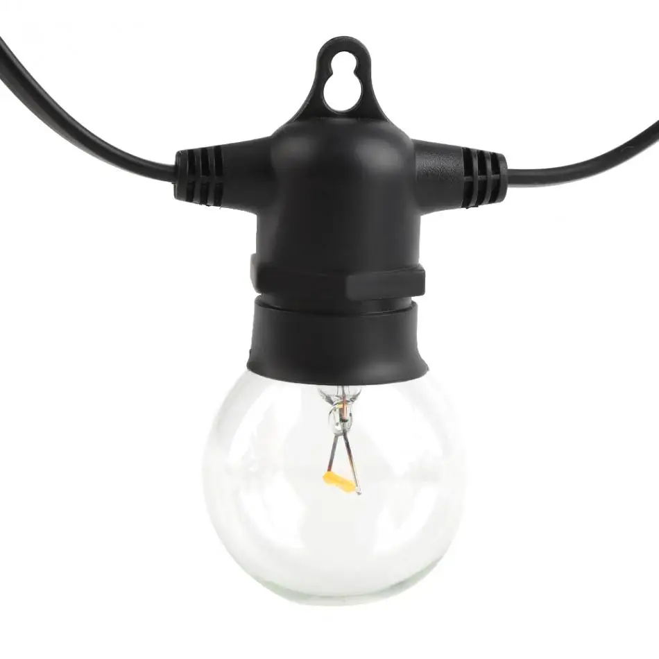 Количество ламп: 25 светодиодный Тип ламп: G40 + светильник накаливания провод: черный, 2x01519 мм, 105 ℃, с водонепроницаемым (IP44) соединителем, Соединенным в серии свинцовый провод: 50 см (всего: 6,75 м). Расстояние между каждой лампочкой: 25 см Цоколь: E12, E14